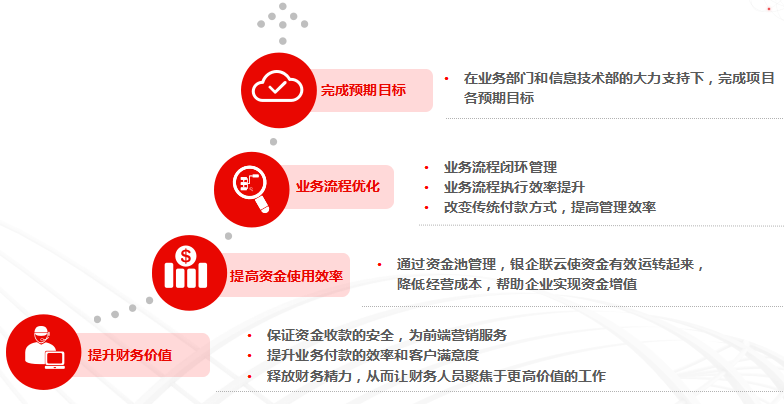 助力實時資金池服務,付款的排程計劃控制,資金歸集得到有效利用,創(chuàng)造更多的結構性存款的利息收入。